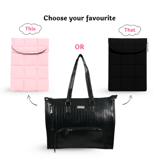 Black Puffer Tote (16 Inch) + Puffer Laptop Sleeve + FREE Barbie Phone