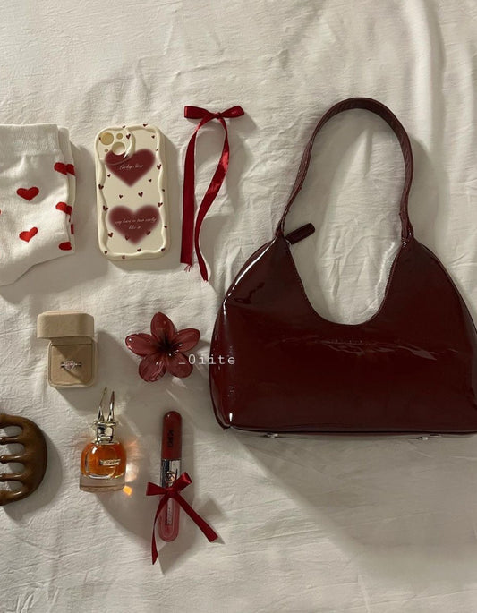Cherry Red Patent Hobo Bag with Gold Zipper